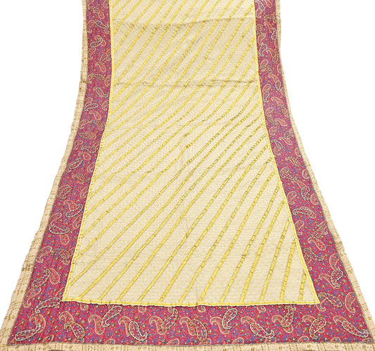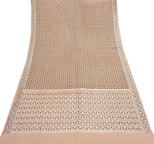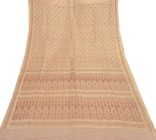 Indian Vintage Beige Woven Tanchoi Brocade Saree Heavy Zari Fabric 5 Yards Ideal for Crafting, Dressmaking Decor Quilting