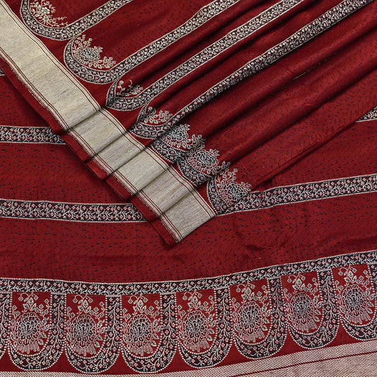 Vintage Banarasi Saree Pure Satin Silk Woven Brocade Zari Fabric Maroon Heavy Craft Sari 5 Yards Indian Antique Textile Dress Making