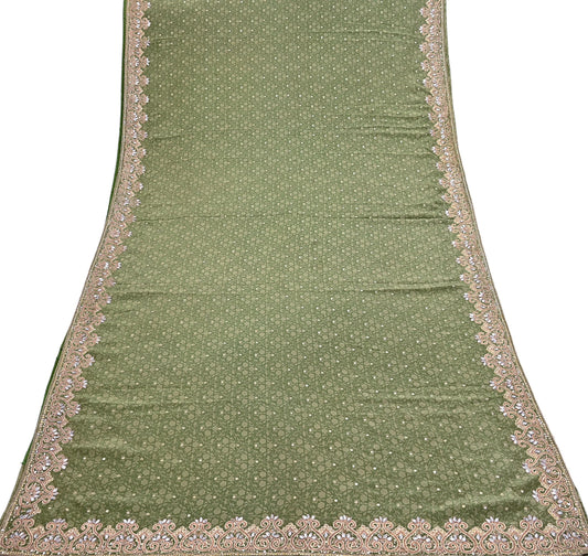 Indian Vintage Heavy Sari Sage Green Pure Georgette Silk Hand Beaded Sarees Craft Fabric 6Yd Sewing Soft Ethnic Wedding Sarees Dress making