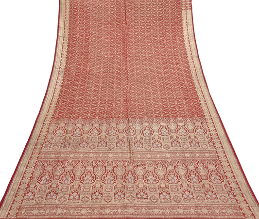 Indian Vintage Sari Red Heavy Pure Silk Woven Banarasi Brocade Saree Fabric 5Yd Ethnic Dress making Crafting Bollywood Dress Designing