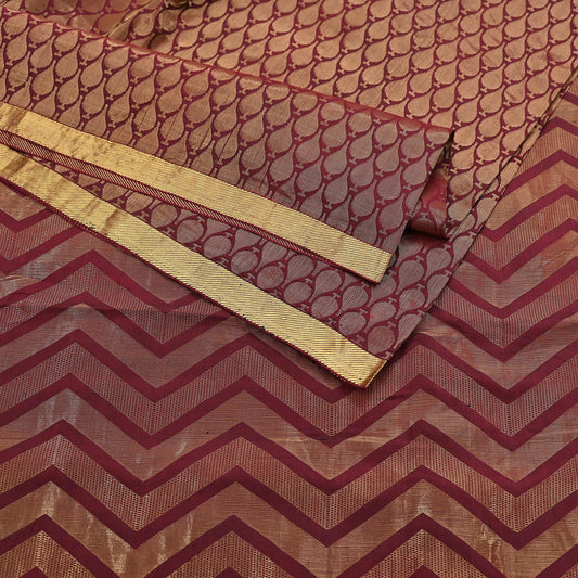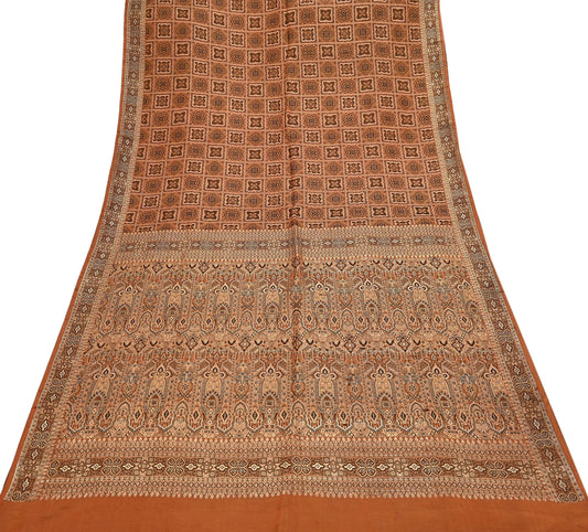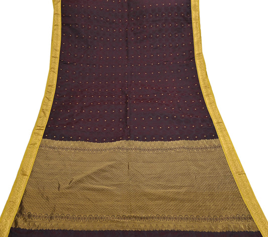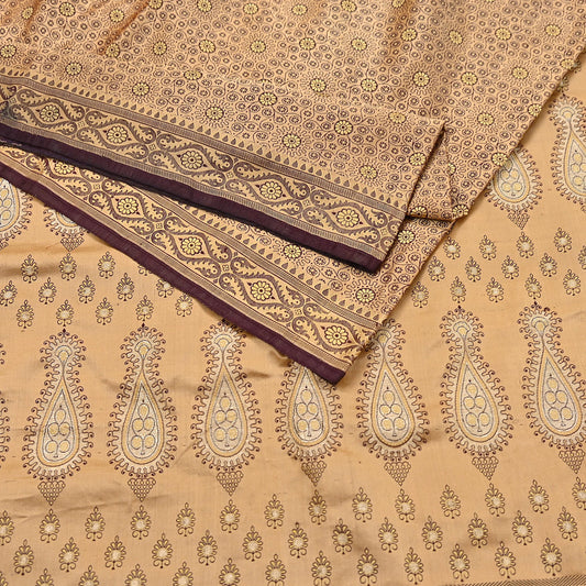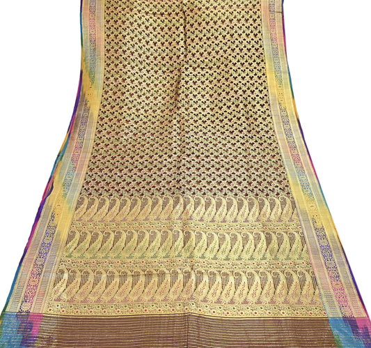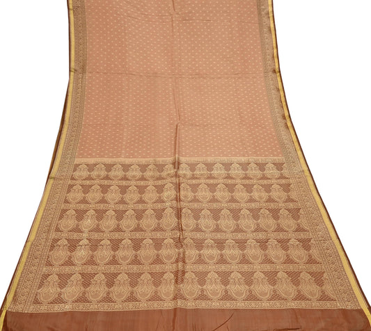 Indian Vintage Sari Brown & Beige Heavy Pure Satin Silk Woven Banarasi Tanchoi Saree 5Yd Ethnic Craft Fabric Upcycle Bridal Heavy Sarees