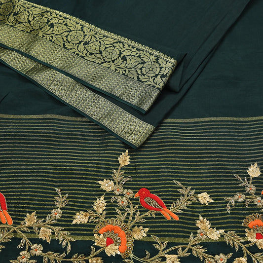 Indian Vintage Heavy Sarees Bottle Green Blend Silk Hand Embroidered Sari Fabric 5Yd Sewing Ethnic Sequins, Glass Beaded Wedding sarees