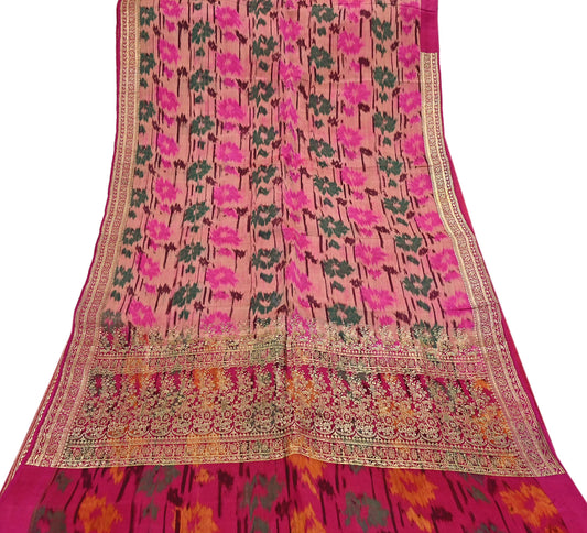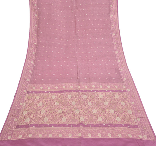 Indian Vintage Heavy Pink Saree Pure Silk Hand Woven Banarasi Sari Craft Fabric 5Yd Sewing Soft Ethnic Zari Dress Making