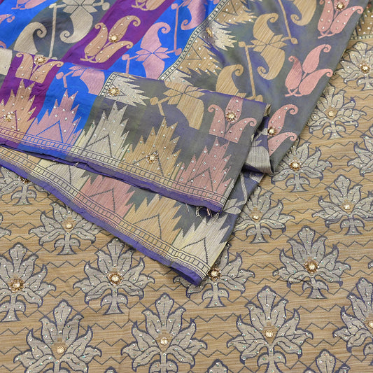 Indian Vintage Sari Beige Heavy Pure Silk Woven Banarasi Brocade Saree Fabric 5Yd Ethnic Dress making Crafting Bollywood Dress Designing