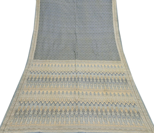 Indian Vintage Sari Gray Heavy Pure Satin Silk Woven Banarasi Tanchoi Saree 5Yd Ethnic Craft Fabric Upcycle Bridal Heavy Sarees