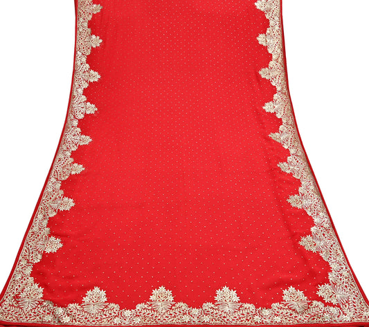 Indian Vintage Heavy Sari Red Georgette Hand Beaded Sarees Craft Fabric 5Yd Sewing Soft Ethnic Wedding Dress making