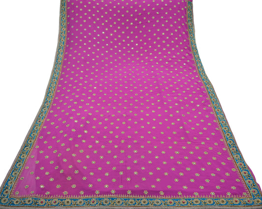 Indian Vintage Heavy Sarees Rani Pink Pure Georgette Silk Hand Embroidered Sari Fabric 5Yd Sewing Ethnic Zardozi/dabka zari Wedding sarees
