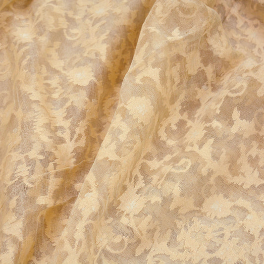 Indian Vintage Sari Beige Pure Silk Hand Woven jamdani sarees Craft Fabric 5Yd Sewing Ethnic Zari Wedding sarees Dress making Crafting
