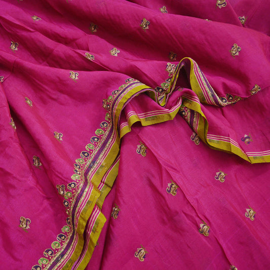 Indian Vintage Heavy Sari Pink & Green Pure Silk Hand Embroidered Sarees Fabric 5Yd Sewing Zardozi/Dabka Sequins Wedding Sarees Crafting