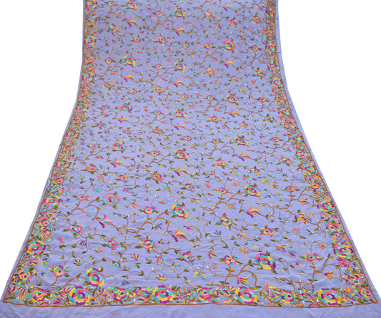 Indian Vintage Heavy Sari Purple Pure Crepe Silk Hand Embroidered Parsi Sarees Craft Fabric 5Yd Sewing Dress making Wedding Sari Crafting
