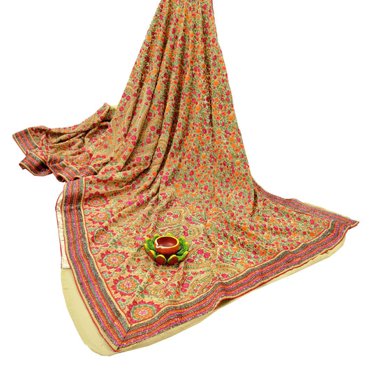 Indian Vintage Heavy Sari Beige Pure Georgette Silk Hand Beaded Sarees Craft Fabric 5Yd Sewing Paisley Ethnic Glass Beaded Wedding Sarees