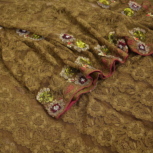 Indian Vintage Heavy Sari Red Net/Mesh Embroidered Sarees Fabric 6Yd Sewing Soft Green Sequins Floral Zari Bridal/wedding Saris