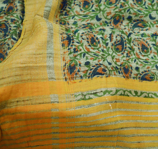 Indian Vintage Heavy Beige & Green Saree Pure Khadi Silk Handloom Indian Sari Craft Fabric 5yard Ethnic Wear Sari