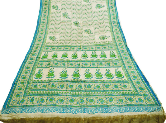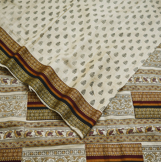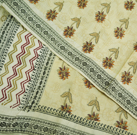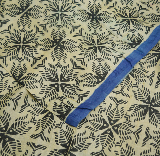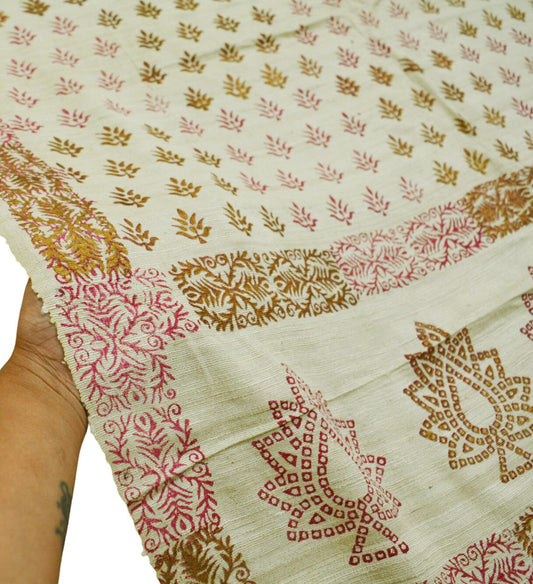 Indian Vintage Cream Saree Pure Khadi Silk Handloom Printed Indian Sari Fabric 5yard Ethnic Wear Sari Floral