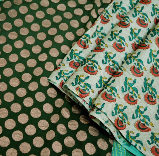 Indian Vintage Green Saree Pure Khadi Silk Handloom Hand Kantha Indian Sari Fabric 5yard Ethnic