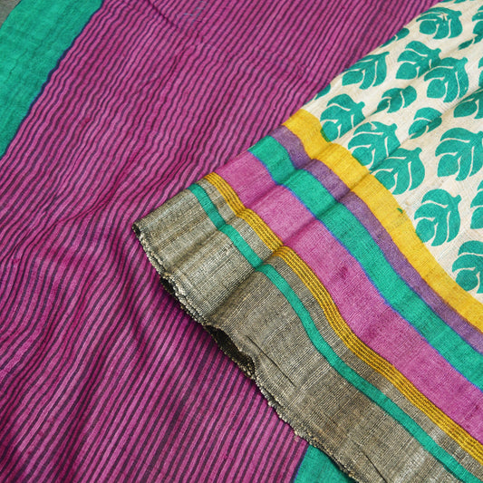 Indian Vintage Multi Saree Pure Khadi Silk Handloom Printed Indian Sari Fabric 5yard Ethnic Wear Sari Floral