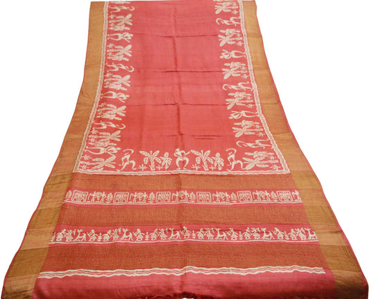 Indian Vintage Pink Saree Pure Khadi Silk Handloom Woven Indian Sari Fabric 5yard Ethnic Wear Sari Zari Border
