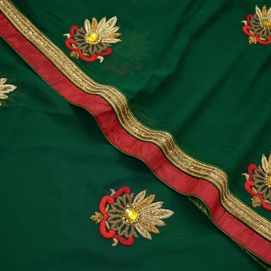 Indian Vintage Green Saree Pure Georgette Silk Hand Beaded Indian Sari Fabric 5Yard Sewing Soft Ethnic Zardozi/ Dabka Wedding Sarees