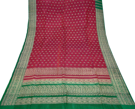 Indian Vintage Heavy Sari Pure Satin Silk Maroon & Green Woven Brocade Banarasi Sarees Zari 5Yd Ethnic Craft Fabric Dress Making Upcycle