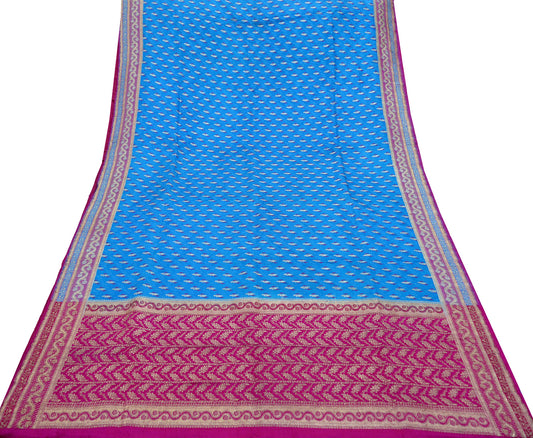 Indian Vintage Heavy Sari Pink & Blue Pure Satin Silk Woven Brocade Banarasi Sarees Zari 5Yd Ethnic Craft Fabric Dress Making Upcycle