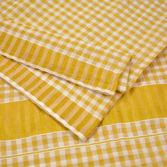 Indian Vintage Beige & Saffron Saree Pure Khadi Silk Handloom Indian Sari Craft Fabric 5yard Ethnic Wear Sari