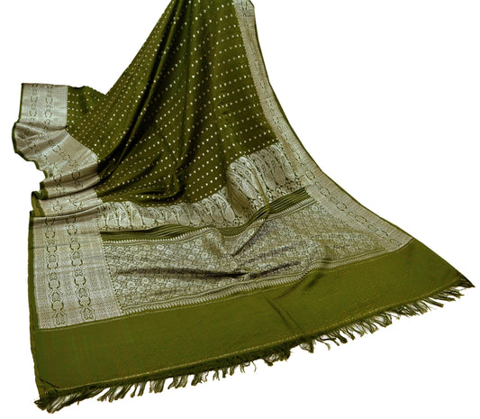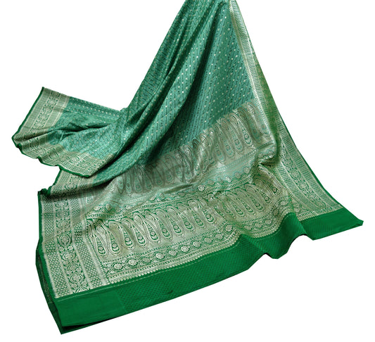 Indian Vintage Green Heavy Wedding Saree Pure Satin Silk Woven Banarasi Brocade Sari Craft Fabric Zari 5Yd Dress Making Crafting used
