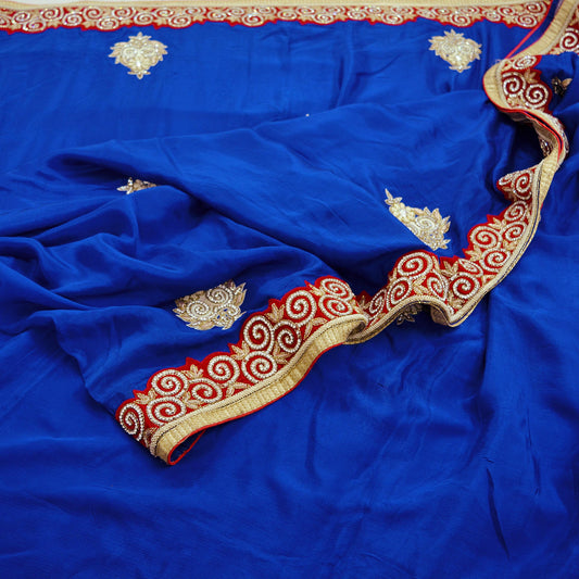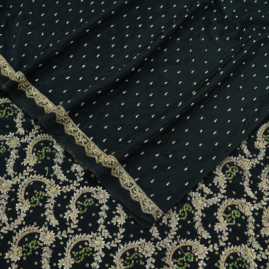 Indian Vintage Black Saree Crepe Hand Embroidered Sari Craft Fabric 5Yd Ethnic Sewing Soft Zardozi/Dabka Wedding Sarees