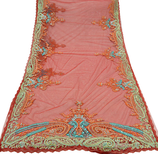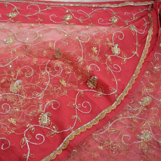Indian Vintage Heavy Sari Red Net/Mesh Embroidered Sarees Fabric 6Yd Sewing Soft Green Sequins Floral Zari Bridal/wedding Saris