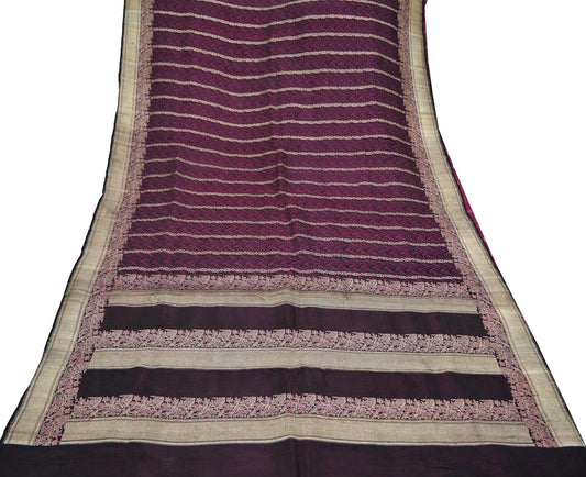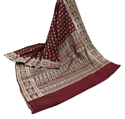 Indian Vintage Sari Maroon Heavy Wedding Pure Satin Silk Woven Brocade Banarasi Sarees Zari 5Yd Craft Fabric Dress Making Bridal Sari