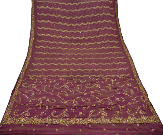 Indian Vintage Purple Sarees Hand Embroidered Sari 100% Pure Silk Craft Fabric 5yd Soft Zardozi/ Dabka, Zari Dress making wedding sarees
