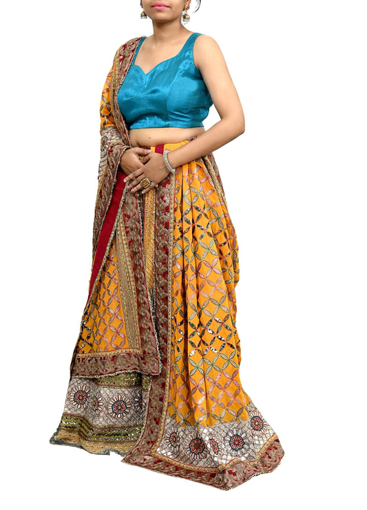 Pre-Owned Designer Abu Jani Hand Embroidered Heavy Lehenga, Blouse & Dupatta (3pcs Set)