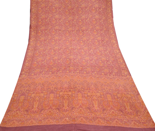 Indian Vintage Saree Pink & Beige Pure Woolen Woven Printed Sari Soft Warm Fabric 5Yard Floral Woven Border