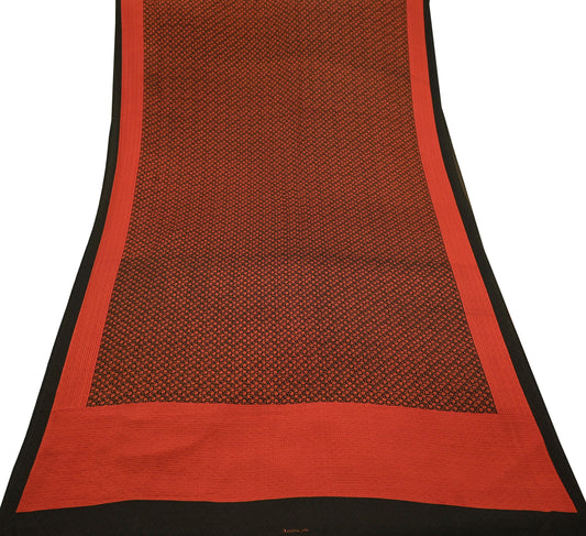 Indian Vintage Black & Orange Moss Crepe Saree Printed Floral Sari 6 Yards Soft Craft Fabric for Sewing, Dressmaking, Quilting,Upcycling