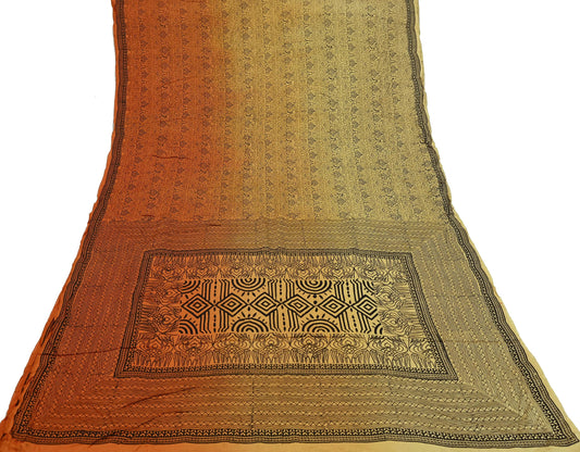 Indian Vintage Sari Orange & Beige Pure Satin Silk Printed Sarees 5yd Sewing Craft Fabric Dress Making Soft Upcycle Quilting Crafting