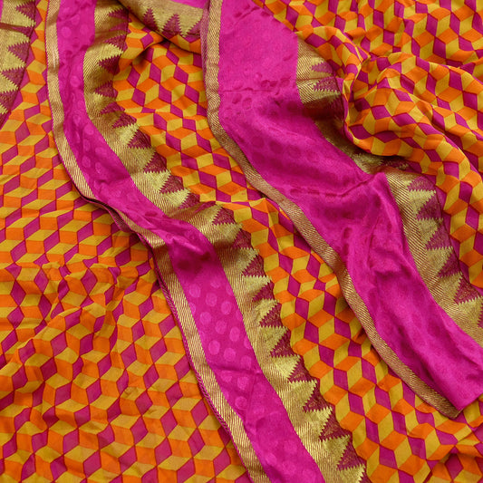 Indian Vintage Sari Orange 100% Pure Silk Printed Sarees 6yd Sewing Craft Fabric Zari Dress Making Soft Wrap Quilting Used Crafting Upcycle