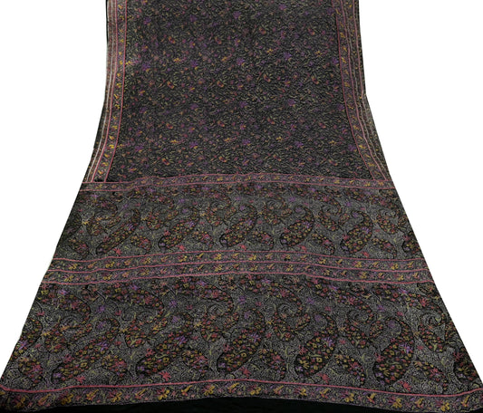 Indian Vintage Black & Gray Saree 100% Pure Silk Printed Sari 5yd Sewing Craft Fabric Dress Making Soft Crafting Quilting Upcycle