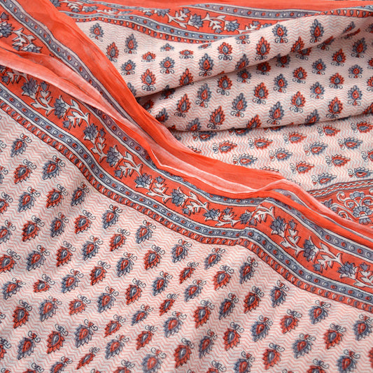 Women Vintage Orange Saree Blend Chiffon Printed Sari Craft Fabric Sewing 6Yd Soft Light Sari Dress Making Floral Crafting Quilting Upcycle