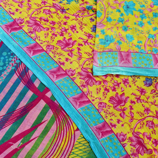 Indian Vintage Sari Yellow 100% Pure Silk Printed Sarees Craft Fabric 5yd Sewing DressMaking Soft Abstract Dress making Quilting Crafting