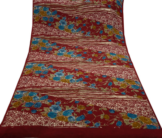 Indian Vintage Sari Maroon Pure Crepe Silk Printed Saree 5yd Sewing Floral Soft Craft Fabric Ethnic Wrap Dress making Crafting Quilting