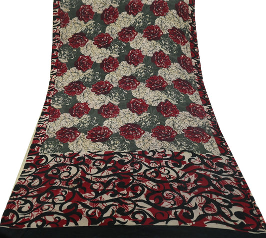 Indian Vintage Sari Beige Pure Georgette Silk Printed Sarees 5Yd Craft Fabric Sewing Quilting Dress making Crafting Quilting Upcycle