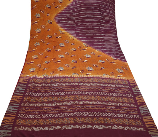 Indian Vintage Sari Orange & Brown Pure Georgette Silk Printed Sarees 6Yd Craft Fabric Sewing Quilting Dress making Crafting Dress Designing