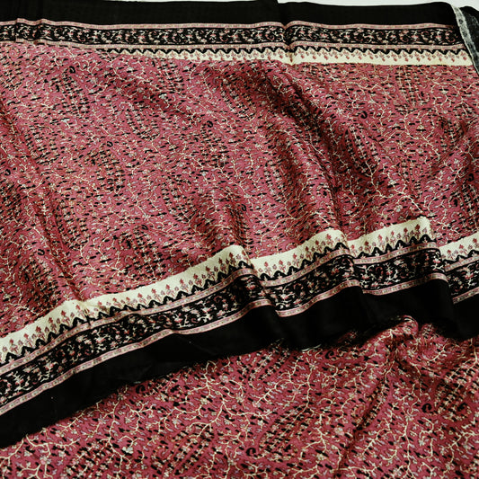 Indian Vintage Sari Pink & Black Printed Pure Silk Sarees 5yd Sewing Craft Fabric Floral Dress Making Soft Quilting Crafting Upcycle Used