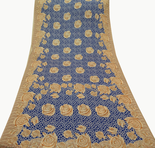Indian Vintage Sari Blue 100% Pure Silk Printed Sarees 5yd Sewing Craft Fabric Dress Making Floral Wrap used Quilting Crafting Upcycle