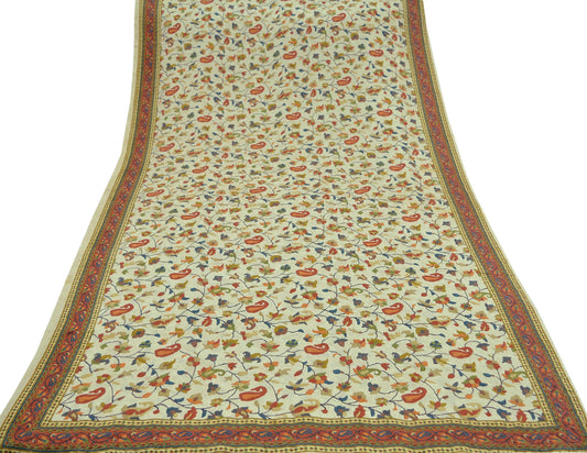 Indian Vintage Sari Beige Pure Crepe Silk Printed Sarees 5yd Sewing Floral Soft Craft Fabric Wrap Dress making Upcycle Crafting Quilting