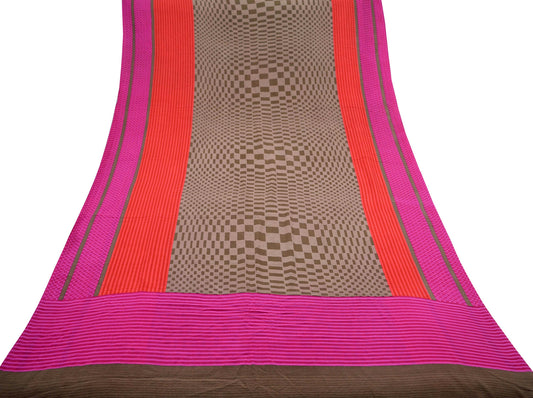 Indian Vintage Sari Beige & Maroon Pure Georgette Silk Printed Sarees Craft Fabric Sewing 5Yd Soft Dress Making Crafting Quilting Upcycle
