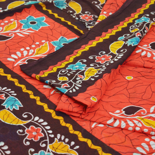 Indian Vintage Sari Brown & Orange Batik Printed 100% Pure Cotton Saree Craft Soft Fabric 5Yard Sewing Sarong Wrap Boho