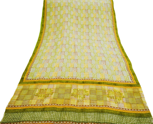 Vintage Sari Ivory & Green Pure Georgette Silk Printed Saree Sewing 5yd Craft Soft Floral Dress Designing for Crafting
