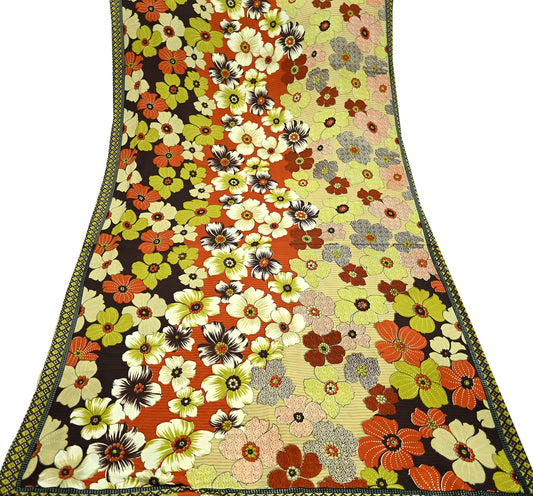 Indian Vintage Saree Orange Moss Crepe Printed Sari 5yd Sewing Floral Soft Craft Fabric Dressmaking Quilting Crafting Upcycle