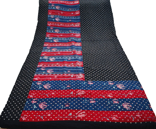 Indian Vintage Sari Black & Maroon 100% Pure Silk Printed Saree Fabric 6yd Sewing Craft DressMaking Soft Paisley