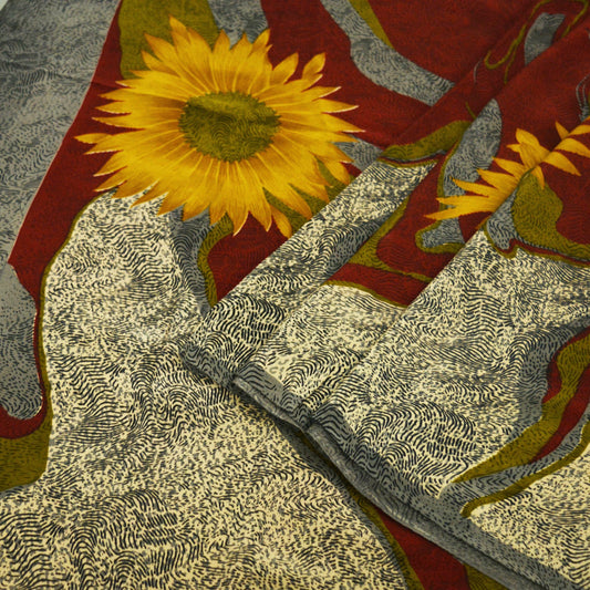 Indian Vintage Sari Maroon Pure Crepe Silk Printed Saree 5yard Sewing Floral Soft Craft Fabric Ethnic Wrap